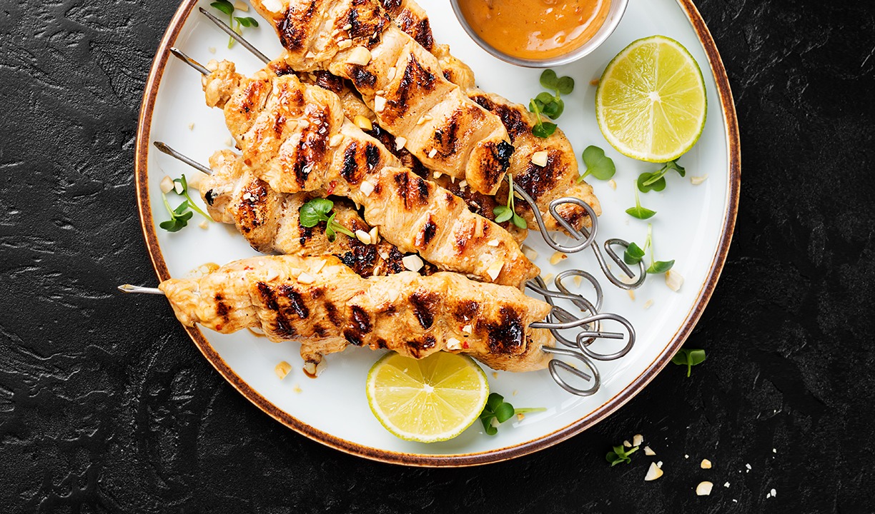 Lembra do espetinho brasileiro? Na culinária tailandesa, o preparo conta com elementos como a carne de porco com cúrcuma, o leite de coco e molhos inusitados, como de amendoim.